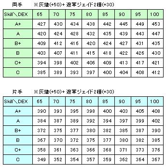 素っ裸のDEX値に灰燼+遊軍2種で計算しています。